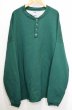 1990年代製、ラッセルのスウェットシャツです。オーセンティックな首元のヘンリーネック仕様に裾リブが付かないスリット入りの所謂カットソータイプの一着。お色はグリーン×グレーで、裾口付近にはタグが縫い付けられております。下記の通り大き目なサイズ感で、ラフにお召しいただくとこなれた雰囲気を演出できるのではないでしょうか。是非この機会にご検討ください。
