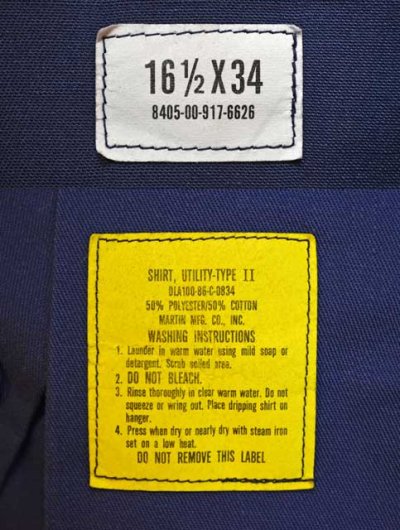 1980年代製、アメリカ空軍で使用されていたユーティリティシャツとパンツのセットアップでのご紹介です。ミリタリーのユーティリティと言えばO.DカラーのARMYの物が一般的ですが、こちらは所謂エアフォースブルーを纏った稀少種。素材はポリコットン混紡でシャツのスペックやシルエットはARMYの物と同等ですが、パンツのスラッシュポケット仕様ながらバックはフラップ付きのパチポケという点が特徴です。シャツはMARTIN MFG・パンツはCOASTAL INDUSTRIESとサプライヤーは異なりますが官給年度は共に86年で、同じ場所で買い付けましたので同一オーナーの物と推測されます。資料的価値の高い稀少品ですので、是非この機会にご検討ください。