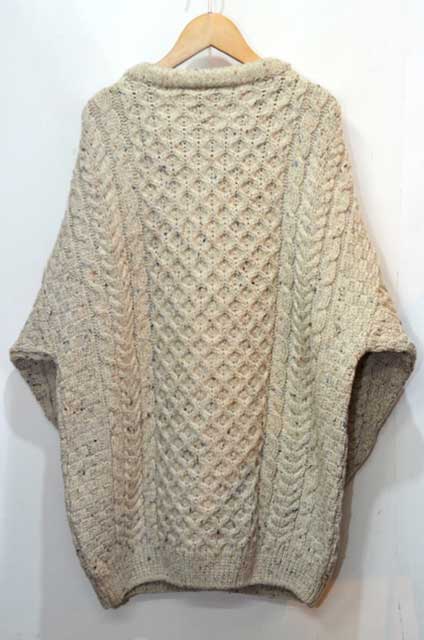 人気ブランド『arancrafts』と同じファクトリーで製造された、『ウエスタン・アイランド』のウールニットです。アラン諸島で働く漁師の仕事着を起源とすることから『アランニット』とも呼ばれ親しまれる防寒性抜群のセーターで、太い毛糸を使用した凹凸のはっきりしたケーブル編みが特徴です。ライトグレーベースに青や橙などの落ち着いた色味のネップが散らされたあまり見つからない色味ですので、是非この機会にご検討ください。