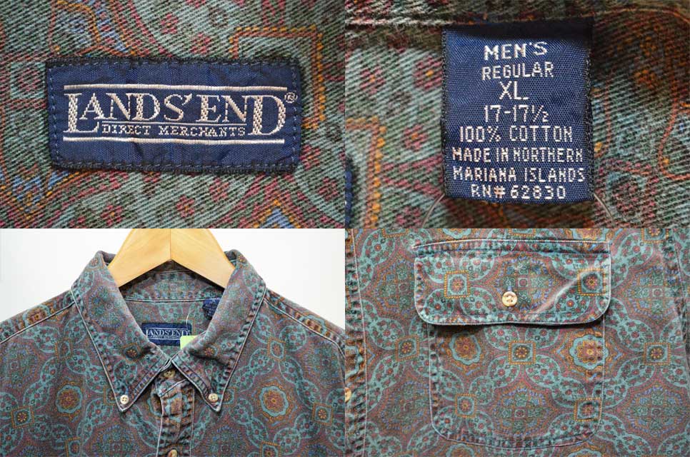 90's LANDS' END S/S 総柄ボタンダウンシャツ
