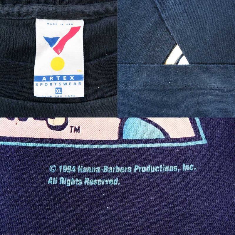 原始家族フリントストーンの邦題でも知られるアメリカのアニメですが、こちらは袖口・裾ともにシングルステッチ縫製のUSA製ARTEXボディを使用したOLD物。おすすめのグッドレギュラーですので、是非この機会にご検討ください。●表記サイズ