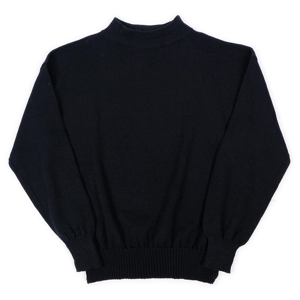 汎用性抜群のダークネイビーとハイゲージウール、ハイネックの首元という特徴を崩さず長期間採用され続けている定番アイテム。ざっくりとお召しいただけるX-LARGEサイズで、目立つ虫食い等がないのも魅力です。シンプルで着まわしの効くアイテムですので、是非この機会にご検討ください。