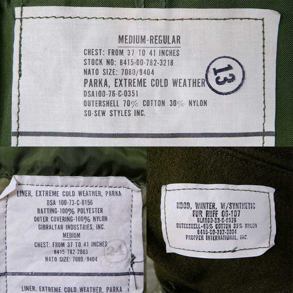 『モッズコート / モッズパーカー』の愛称で知られる名品ですが、こちらは製造年やサプライヤーは異なりますがシェル・ライナー・フードが全て揃った一枚。更におそらく未洗いと思われる上々のコンディションという点も魅力的です。フードとライナーを取り外すことで春先までお使いいただけるアイテムですので、コンディションに拘ってお探しの方は是非この機会にご検討ください。●表記サイズ