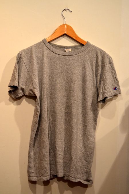 1980年代製チャンピオン12/88の無地TEEになります。サイズ表記はLです。小さめですので実寸を参照ください。カラーは人気の杢グレーになります。コンディションもダメージ・汚れなどなくボディもまだ肉厚な状態を保っております。プリント物に比べ玉数が圧倒的に少ない無地。人気も高く当店でも仕入れると回転の早いアイテムになりますのでお探しの方はお早めに。