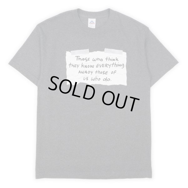 メッセージが書かれた紙が雑にテープで張られた様子を切り取った、アメリカ古着らしいメッセージプリントTEE。気兼ねなくお召しいただけるグッドレギュラーです。