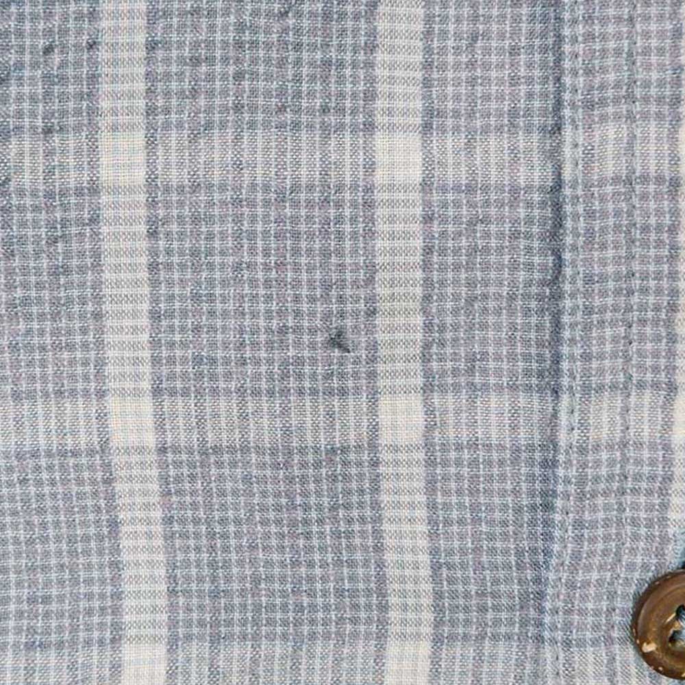 爽やかな配色のチェック柄と、肌離れが良く夏場に最適な凹凸のあるシアサッカー生地を使用した一枚。スリット入りのボックスシルエットで、胸ポケットにフィッツロイタグが縫い付けられている点もポイントです。