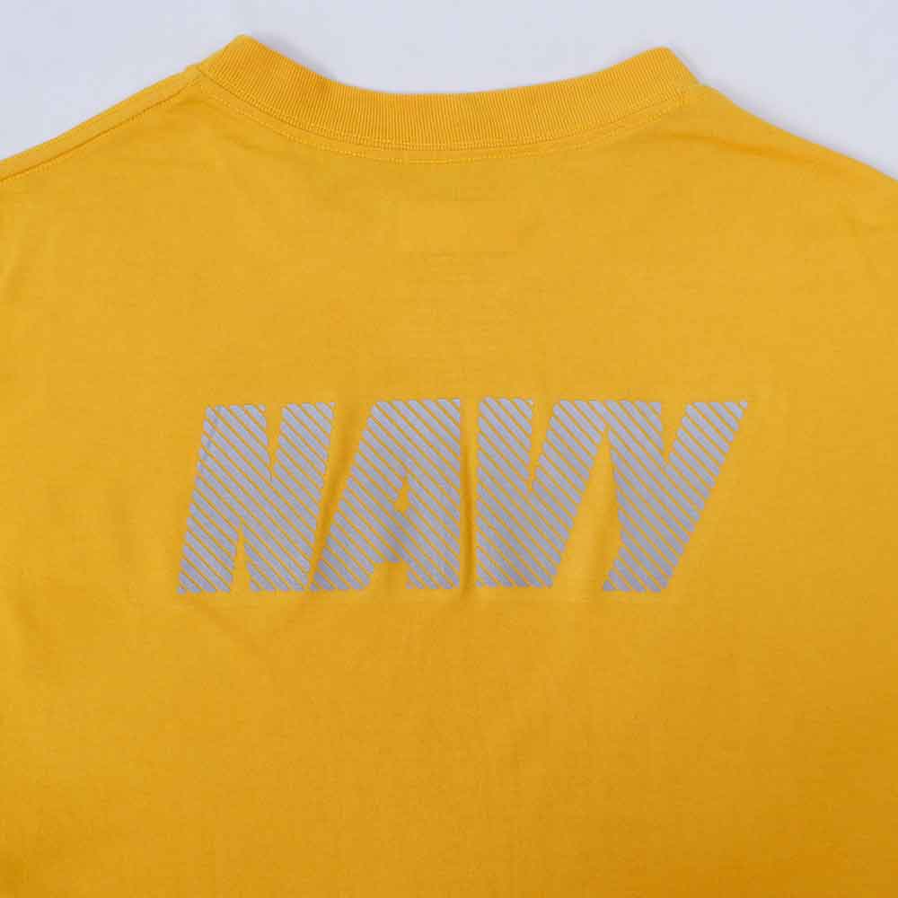 イエローボディに映えるリフレクター仕様のロゴプリントが両面に施された、米海軍のトレーニング用のTシャツです。メーカーはお馴染みのM.J.SOFFE社で、速乾性に優れた素材は蒸し暑い日本でも活躍すること間違いなしです。