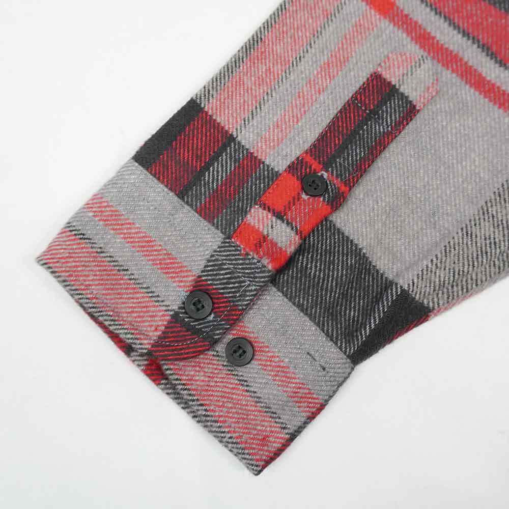グレーベースの好配色なチェック柄が目を引くこちらは、ビッグマック等と肩を並べる名門ブランドの稀少なフラッシャー付きのデッドストック品。1980年代から1990年代頃にUSA製と並行して第三国で製造された物ですが、縫製や生地などのクオリティはアメリカ製と全く遜色ありません。