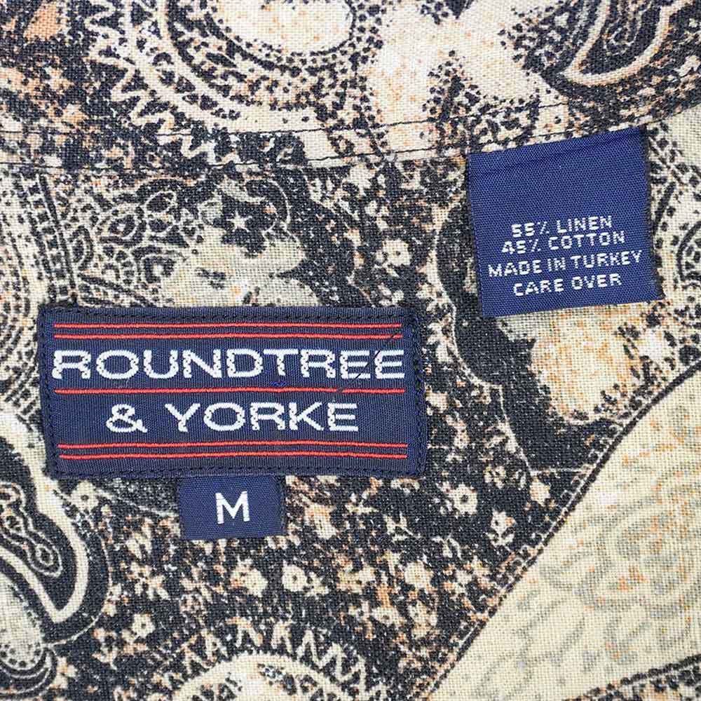 90's ROUNDTREE & YORKE 総柄 S/S レギュラーカラーシャツ "Linen×Cotton" [mtp03361501502218]