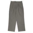 2タック仕様の腰回りが目印の定番アイテムですが、単色ではなくブラウン系のハウンドトゥース柄(千鳥格子柄)が目を引く変わり種。BDなどのシャツ類はもちろん、オーバーサイズのコットンニット等でラフに着崩したスタイルにもおすすめの一本です。