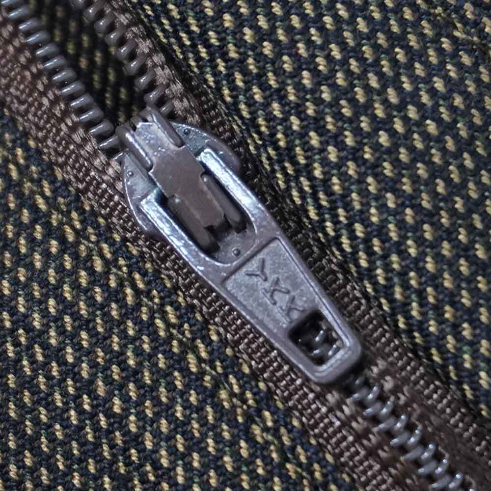 雰囲気の良いブラウンベースのピンチェック柄が目を引く、やや薄手のコットンファブリックで仕立てられた一本。2タック仕様にダブル仕上げの裾というオーセンティックな仕様は扱い易く、意外と見掛けないコンパクトなサイズバランスも魅力です。