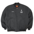 MA-1のような丸いシルエットが特徴のこちらは、企業ロゴの刺繍が胸に施されたアメリカ古着らしいワークジャケット。防寒性に優れたキルティングライナー仕様で大きめサイズ、一番人気のブラックと役満な一着です。