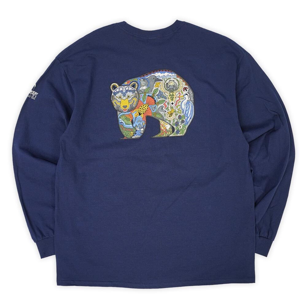 こちらは前面の縄で形成されたピースマークに対し、背面は『SUE COCCLA』の熊という試し刷りらしくなんの関連性もない組み合わせで、良い意味でのアメリカらしい適当さが見られる一枚です。
