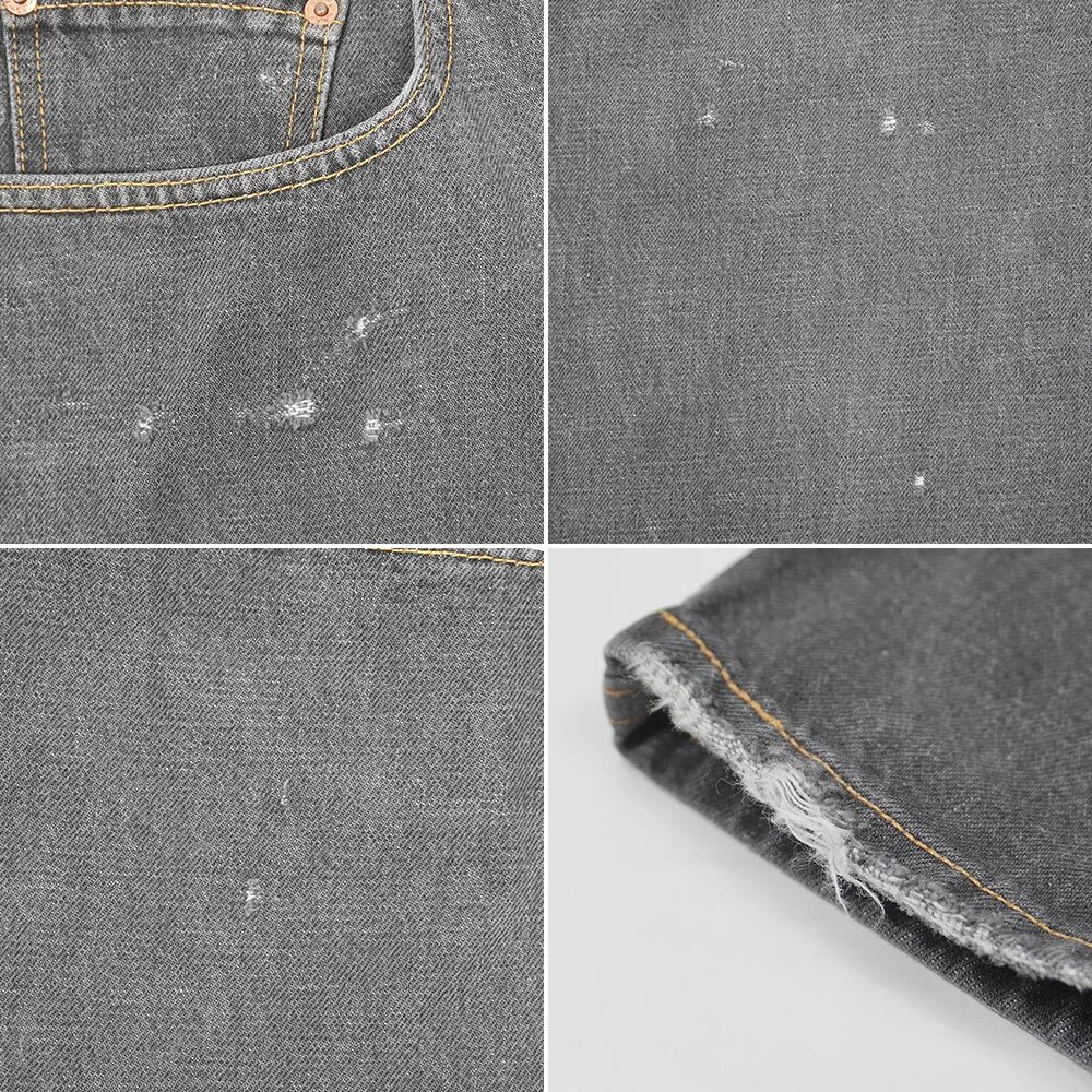 2000年初頭までに製造されたOLD物に限るとあまり市場に出ない569ですが、白の横糸を使うことで非常に雰囲気の良いエイジングが期待できる通称『先染め』の生地を使用した稀少な個体を買い付けることが出来ました。シルエットはほとんどテーパードが掛からない太めのストレートで、穿き込まれリアルなエイジングが見られる雰囲気のある個体です。