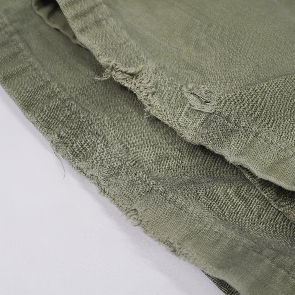 後年の混紡生地の物と比べ格段に風合い豊かで、雰囲気の良いエイジングが期待できるコットンサテン地を使用した稀少な一本。こちらは全体に迷彩柄調のハンドペイントが施された珍しい個体で、初見の方も少なくないのではないでしょうか。