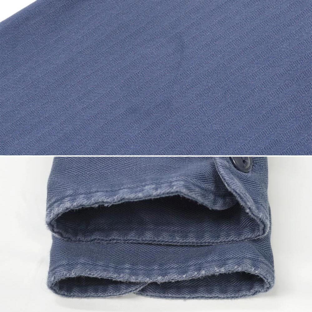 雰囲気抜群のヘリンボーン織りのコットン地で仕立てられた、ビンテージと見紛う空気感を漂わす一枚。襟やポケットの形やサイドに付くマチなど、40-50年代のワークシャツをサンプリングしながらも、ラルフらしさを加えて再構築されていることが分かります。