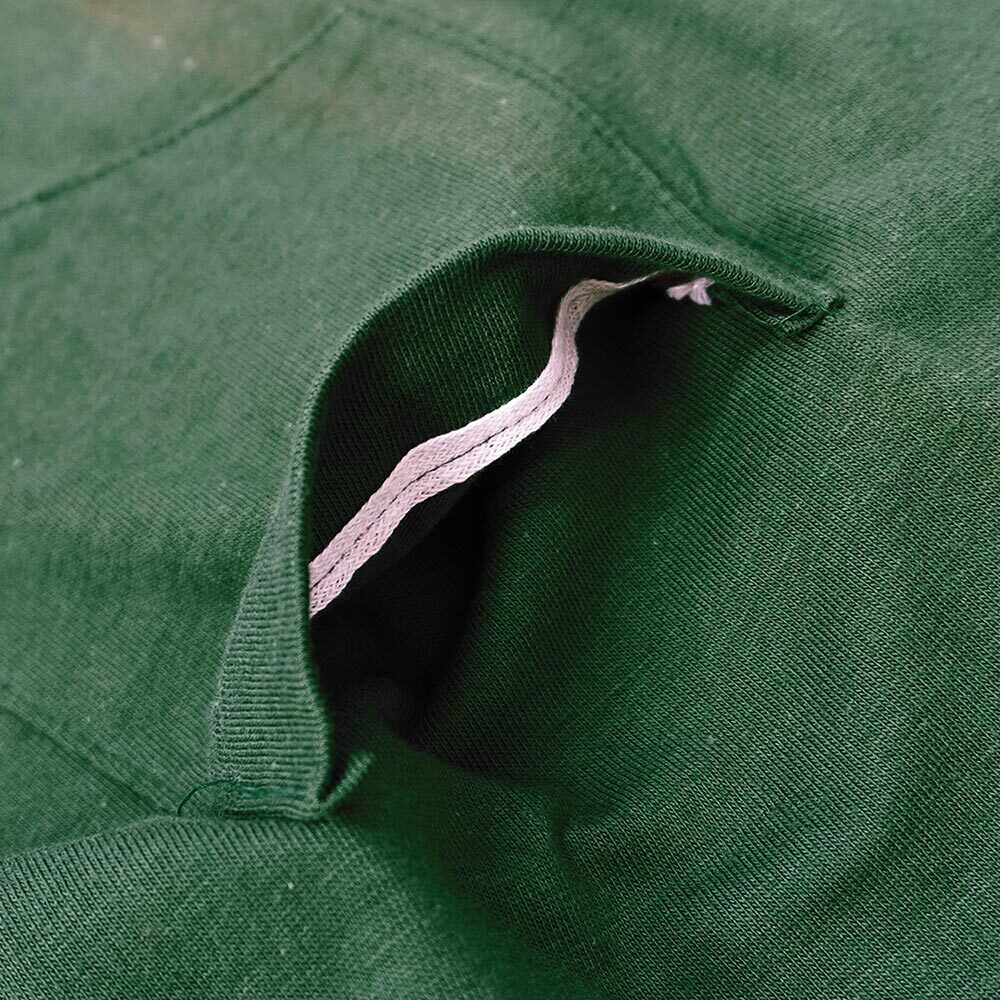 何枚あっても困ることのない無地仕様のポケTeeですが、こちらはMiller等の総柄Tで知られるCinderella Knitting Mills社が70年代に製造した個体。素材はコットン100%で、袖口・裾ともにシングルステッチ縫製の丸胴仕様。ダートマスグリーンのような深みのある色味も魅力です。