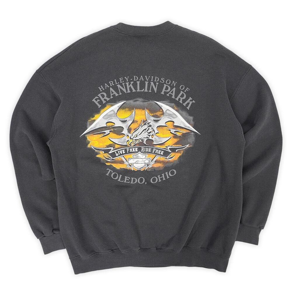 Early 00's HARLEY-DAVIDSON 両面プリント スウェット "FADE BLACK"