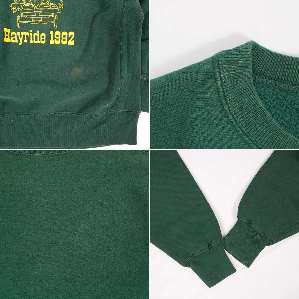 チャンピオンのリバースウィーブを踏襲した、身頃のサイドに配置された切り替えと肉厚な生地感が魅力の一着。嬉しいUSA製で、アメリカ古着らしいファニーなプリントも雰囲気抜群です。
