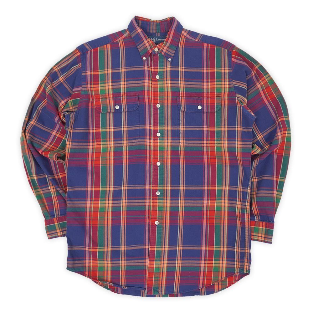 90's Polo Ralph Lauren フランネル ボタンダウンシャツ "RL WORKSHIRT / Navy Plaid" [mtp034a1401486737]
