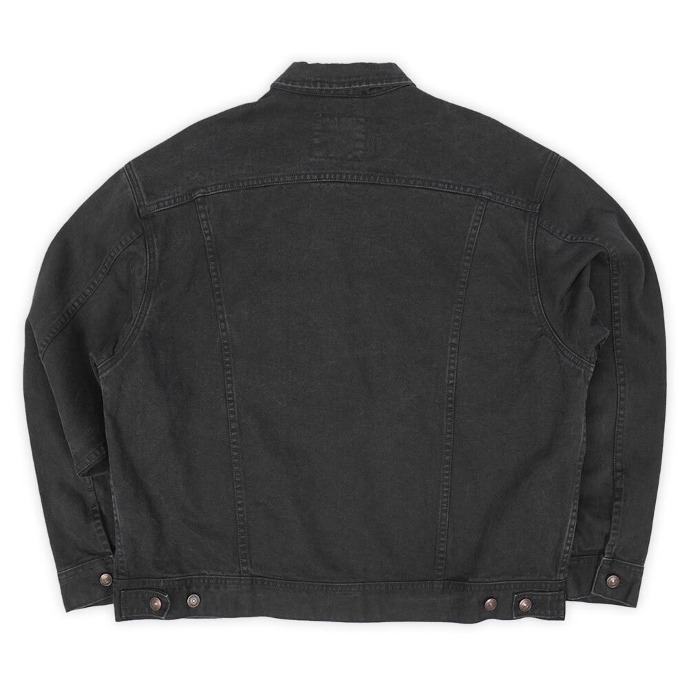 年代やブランド問わずなかなか見付からないブラックデニムのトラッカージャケットですが、こちらは2000年初頭頃に製造されたLeeの一着。90'sの名残を感じるファットでいなたいシルエットで、左胸に施された企業ロゴの刺繍も雰囲気抜群です。