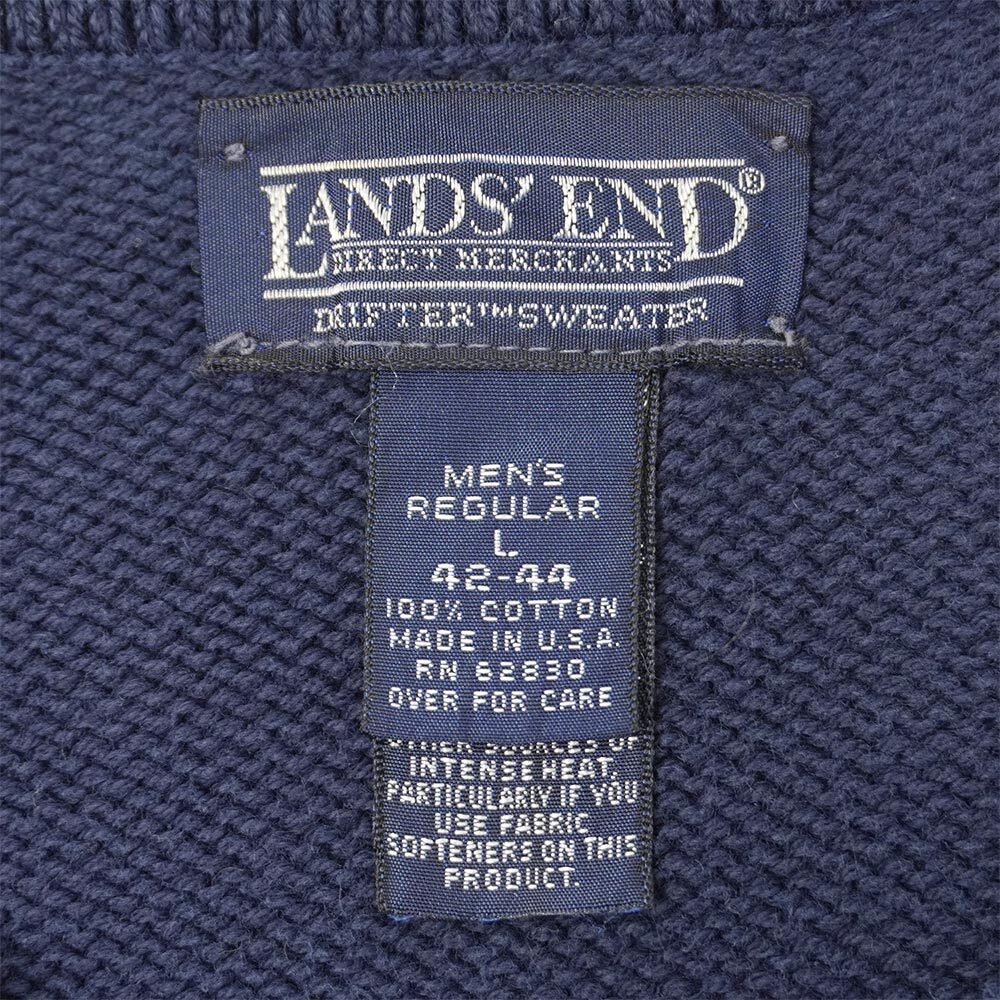 90's LANDS' END コットンドリフターセーター "NAVY / MADE IN USA" [mtp074a2901756885]