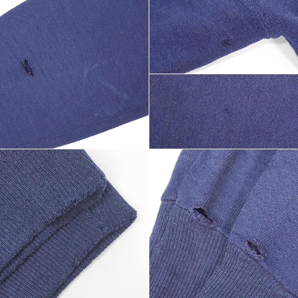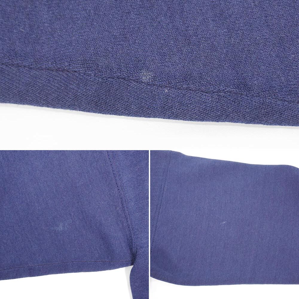 フェードしたネイビーボディに、雰囲気良くクラックしたロゴプリントが目を引く一着。1990年代に造られた通称『銀タグ』の付くオールド物で、ダメージ箇所も雰囲気の醸成に一役買っているおすすめの個体です。
