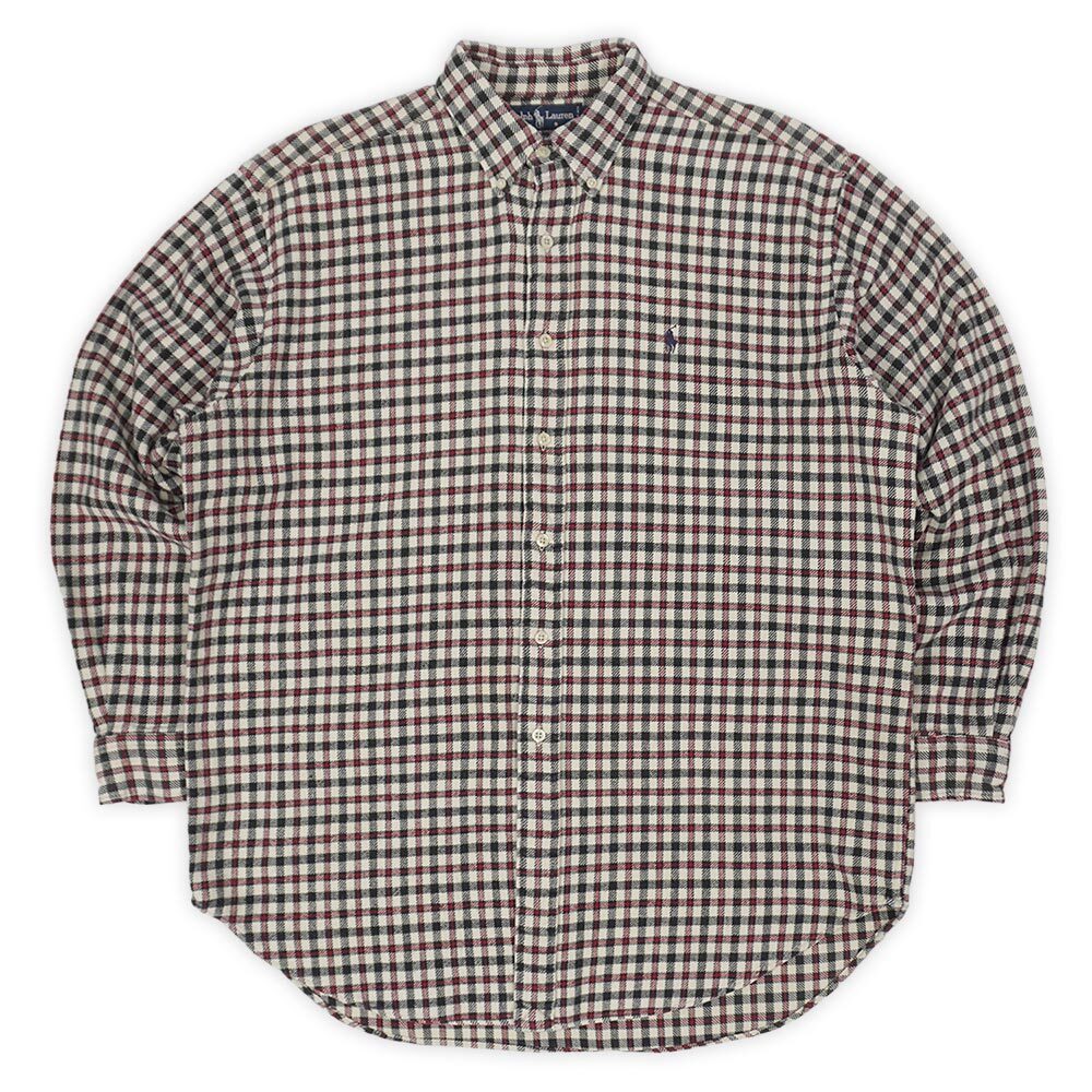 90's Polo Ralph Lauren ヘビーネル ボタンダウンシャツ "BLAIRE / Off White × Black Plaid"
