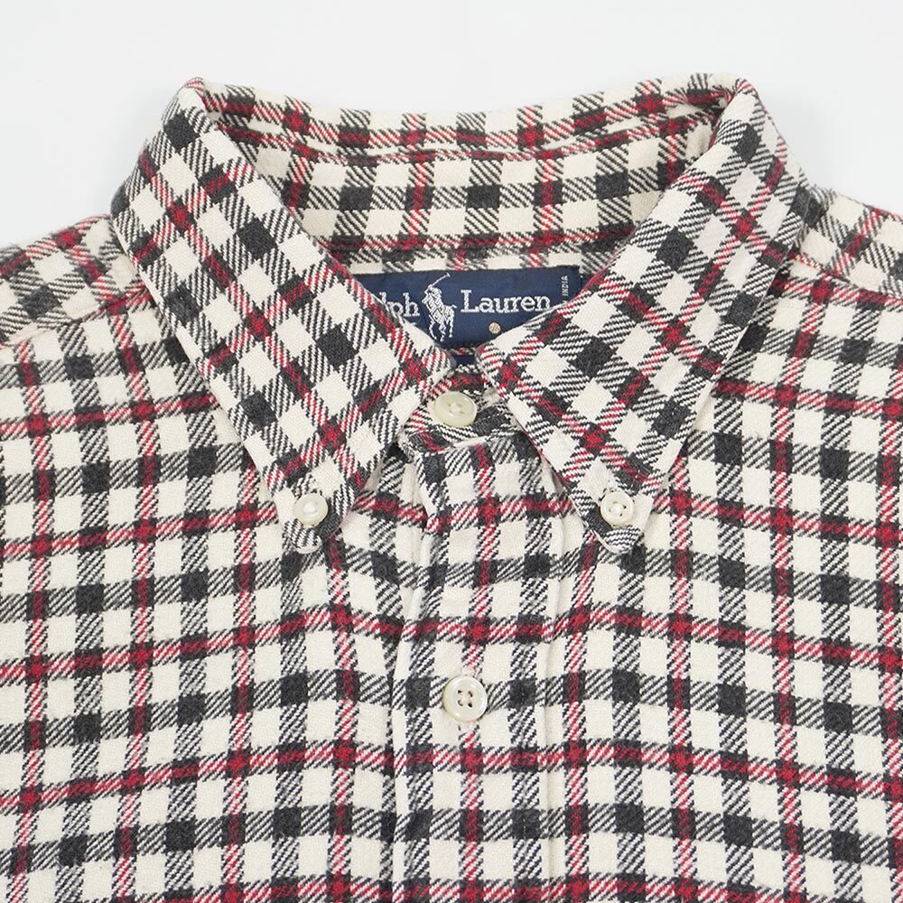 90's Polo Ralph Lauren ヘビーネル ボタンダウンシャツ "BLAIRE / Off White × Black Plaid" [mtp034b0301486940]