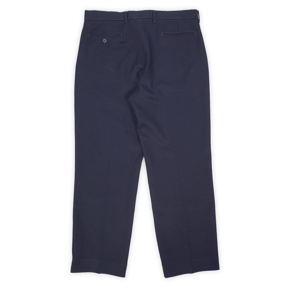 同社のノンデニムパンツと言えばスタプレが有名ですが、こちらはその名の通りシンプルなテーパードストレートシルエットのスラックスタイプ。お色は杢系の物と比べ格段に玉数が少ない単色のダークネイビーで、W36 L30表記という均整のとれたサイズバランスも魅力です。