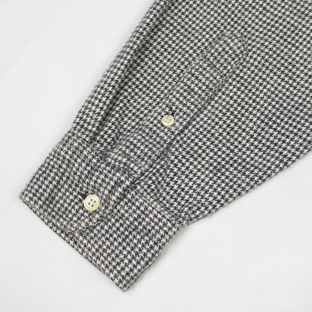風合いの良いコットンネル地で仕立てられた、モノトーンのハウンドトゥース(千鳥格子)柄が魅力のグッドレギュラー。着丈の長過ぎないシルエットやオーセンティックなBD仕様は汎用性抜群ですので、是非この機会にご検討ください。