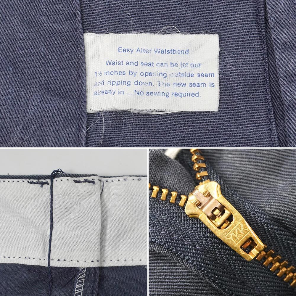 ディッキーズが製造を請け負った名作874を踏襲した造りの定番アイテムですが、こちらはTCツイルではなくコットン100%のファブリックで仕立てられた非常に珍しい個体。荒々しいエイジング具合はコットン特有のもので、レングスはやや長めですがお好みの長さに裾上げしてもデニムほど違和感が出ないのではないでしょうか。