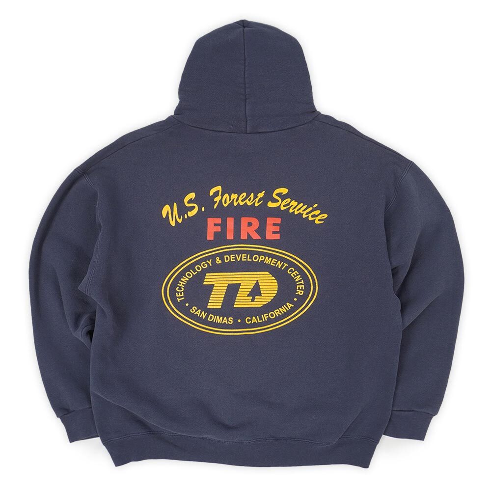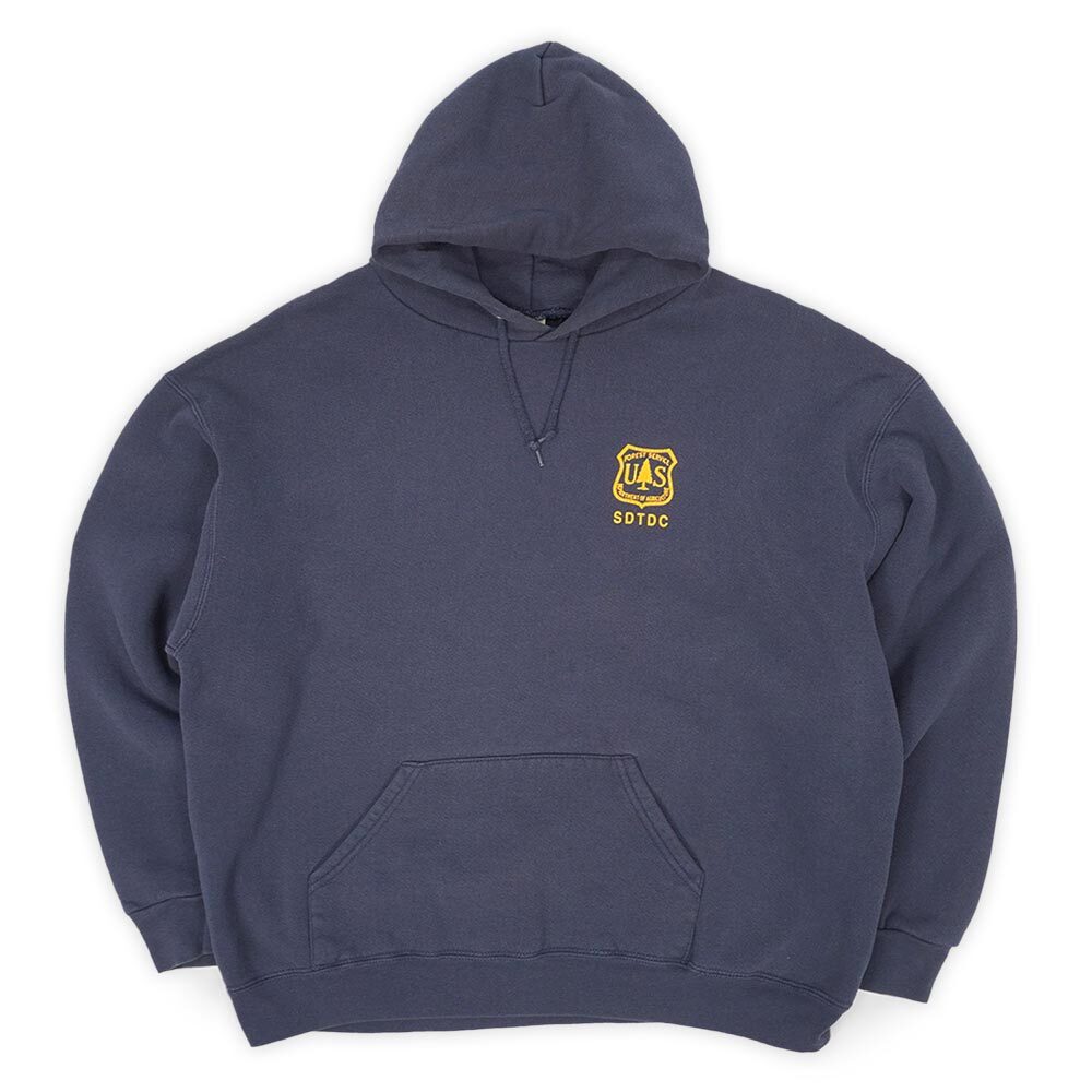 弊社では昔から力を入れて買い付けているフォレストサービス物ですが、こちらは両面にプリントが施された珍しい仕様のフーディー。程良く肉厚なボディはLeeの物で、USFSと言えばのグリーンではなくネイビーがチョイスされているのも高査定ポイント。