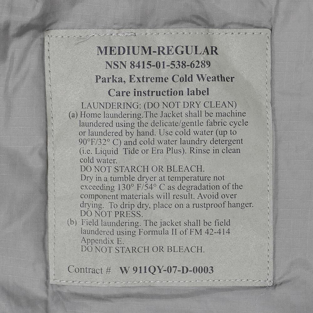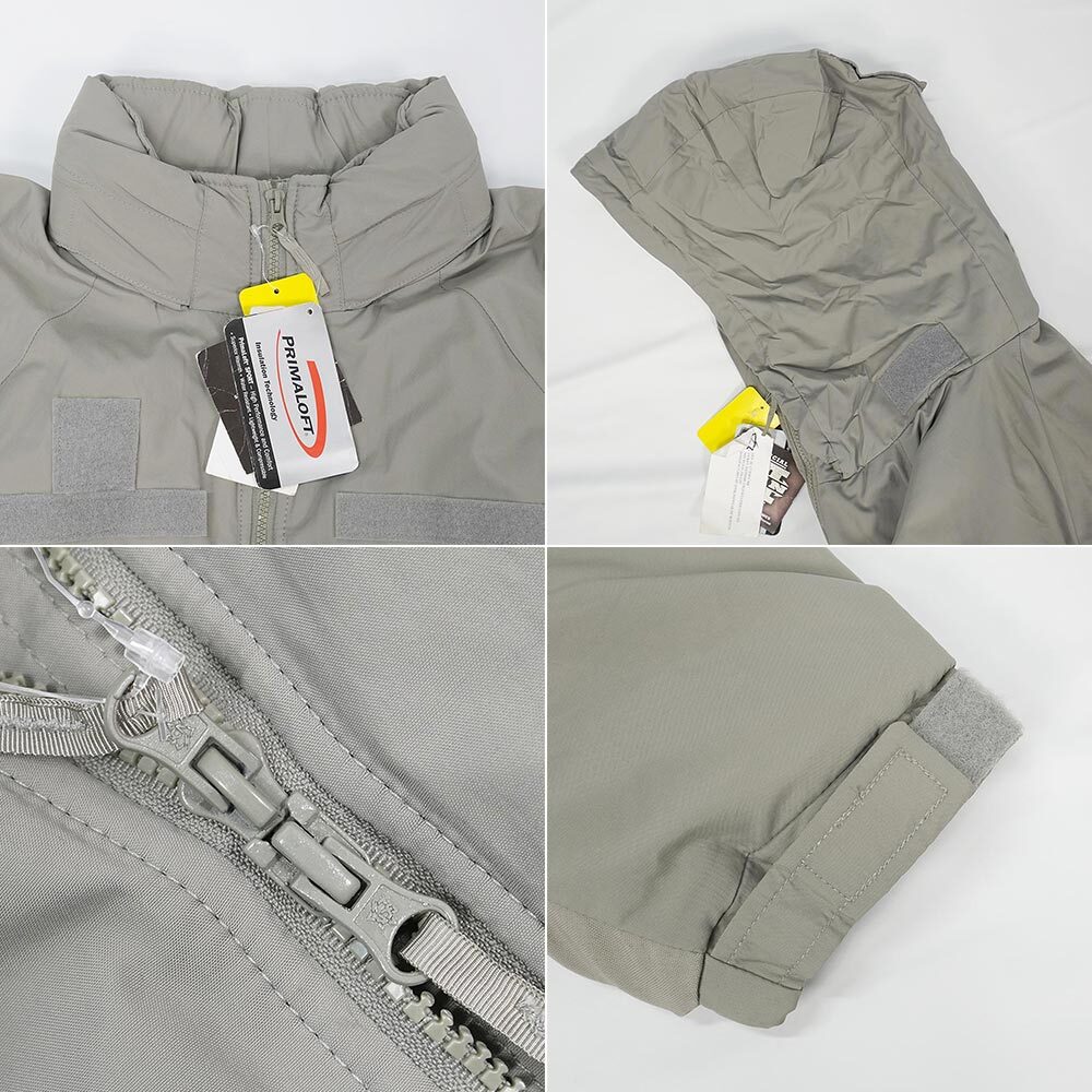 米軍のレイヤリングシステム『ECWCS(Extended cold weather clothing system)』において、最上位のレベル7に位置づけられるアイテムです。ダウンを上回る圧巻の防寒性を持ちながらご自宅の洗濯機で丸洗いが可能で、襟内部にはフードが収納されております。