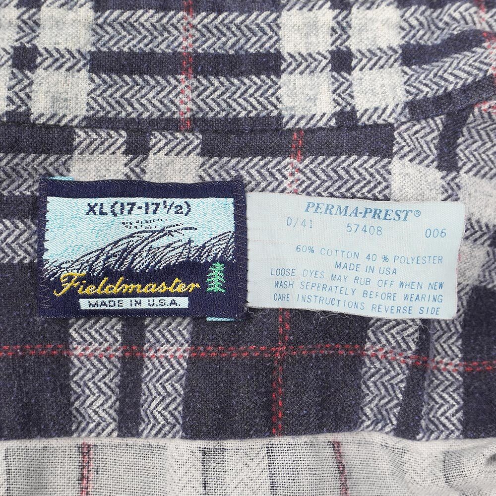 プリントネルでは珍しいヘリンボーン柄が組み込まれたチェック柄が目を引く、SEARS傘下のフィールドマスターから90年代頃に発売されたOLD物。嬉しいUSA製で、身幅がたっぷり取られた大きめサイズながら着丈が長過ぎずレイヤードがし易い形ですので、是非この機会にご検討ください。