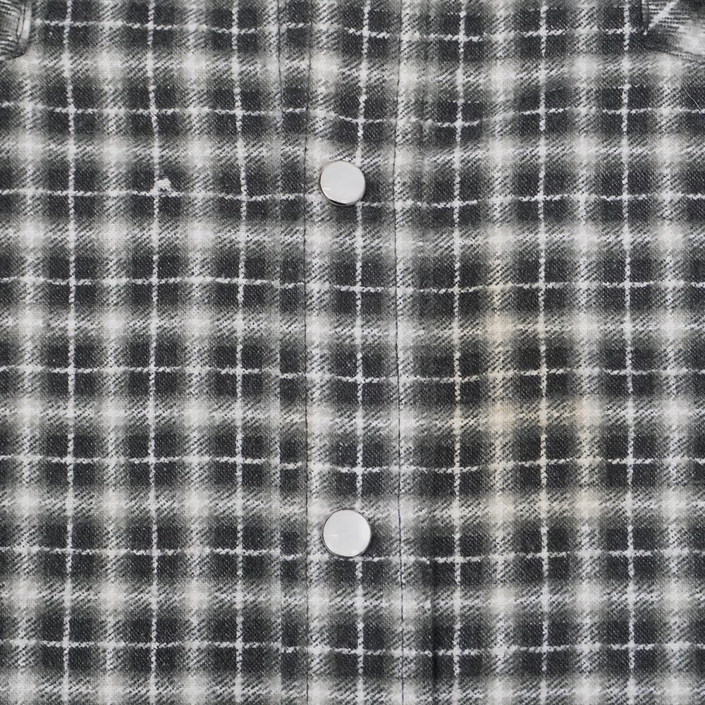 ダービー型のジャケットなどのイメージが強いブランドですが、こちらは珍しいプリントネル素材のワークシャツ。ボタンがトップ以外全てスナップ式なのは他にないディテールで、黒ベースのオンブレチェック柄は雰囲気抜群です。