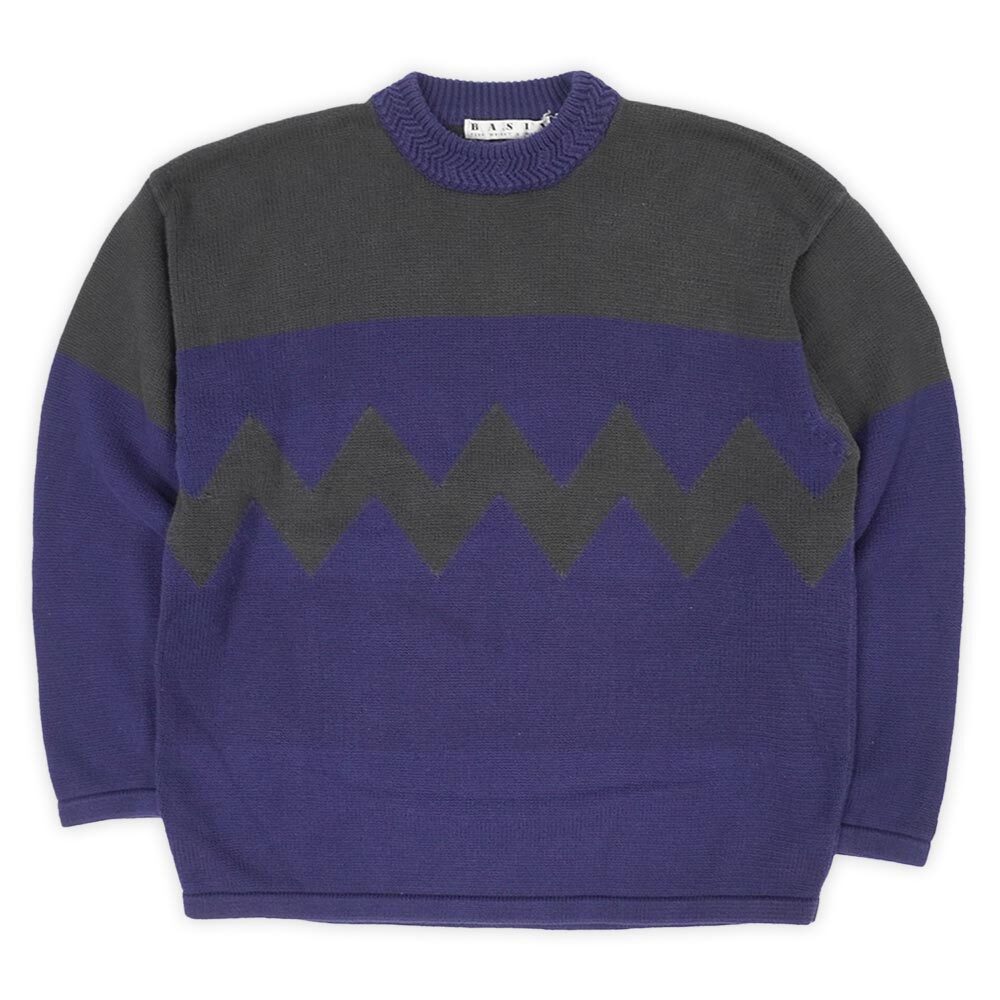 身頃に配されたジグザグのラインと切り替えが目を引く、リブが付かないカットソー型のコットンニット。ご自宅でのメンテナンスも容易ですので、スウェット感覚でお使いいただけるグッドレギュラーです。