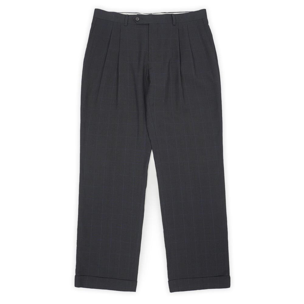 ポリエステルにレーヨンをブレンドした、とろみのある上質なファブリックで仕立てられた変わり種。ブラックベースの所謂ウインドウペンチェックや、W33 L30表記の抜群のサイズバランスも魅力です。