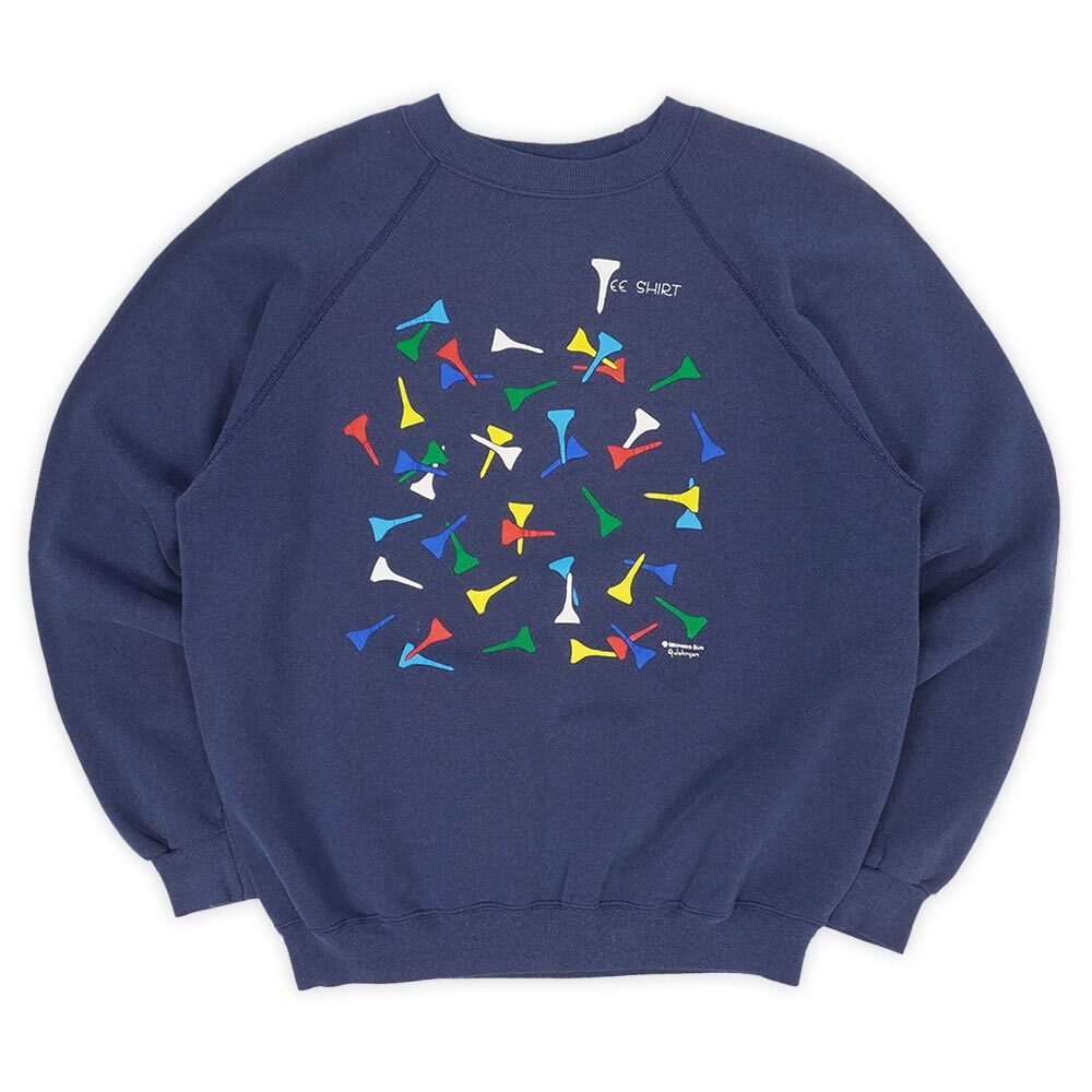 カラフルなゴルフのティーが発泡プリントで載せられた、アメリカ古着らしいポップな雰囲気のグッドレギュラー。この年代のヘインズは造りが小さめですので、XLサイズも高査定ポイントです。