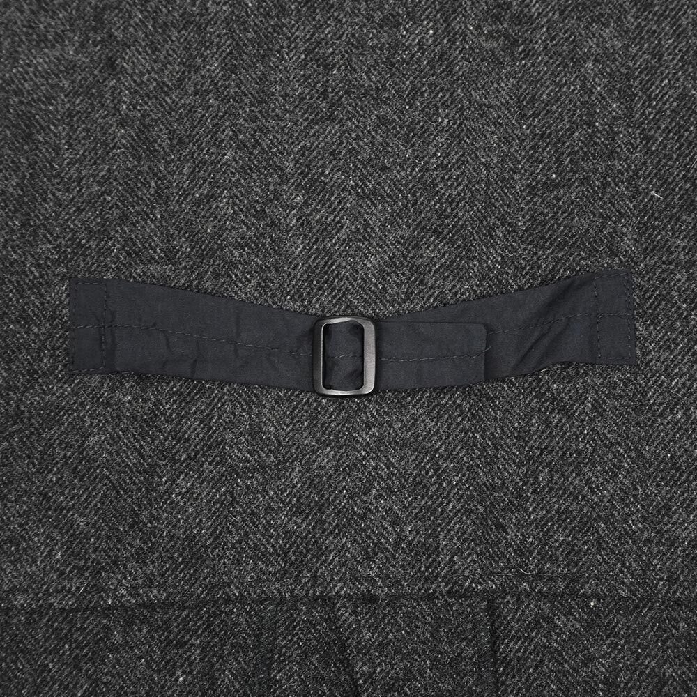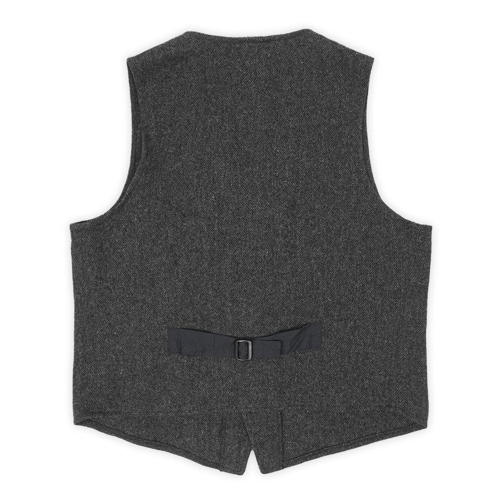 ヘリンボーン織りのウール地とシンチバックが特徴の、老舗ブランドらしいオーセンティックなベストです。背面の着丈が短い仕様ですがシルエットは非常に良く、ジャケット類のインナーとしても有能ですので是非この機会にご検討ください。