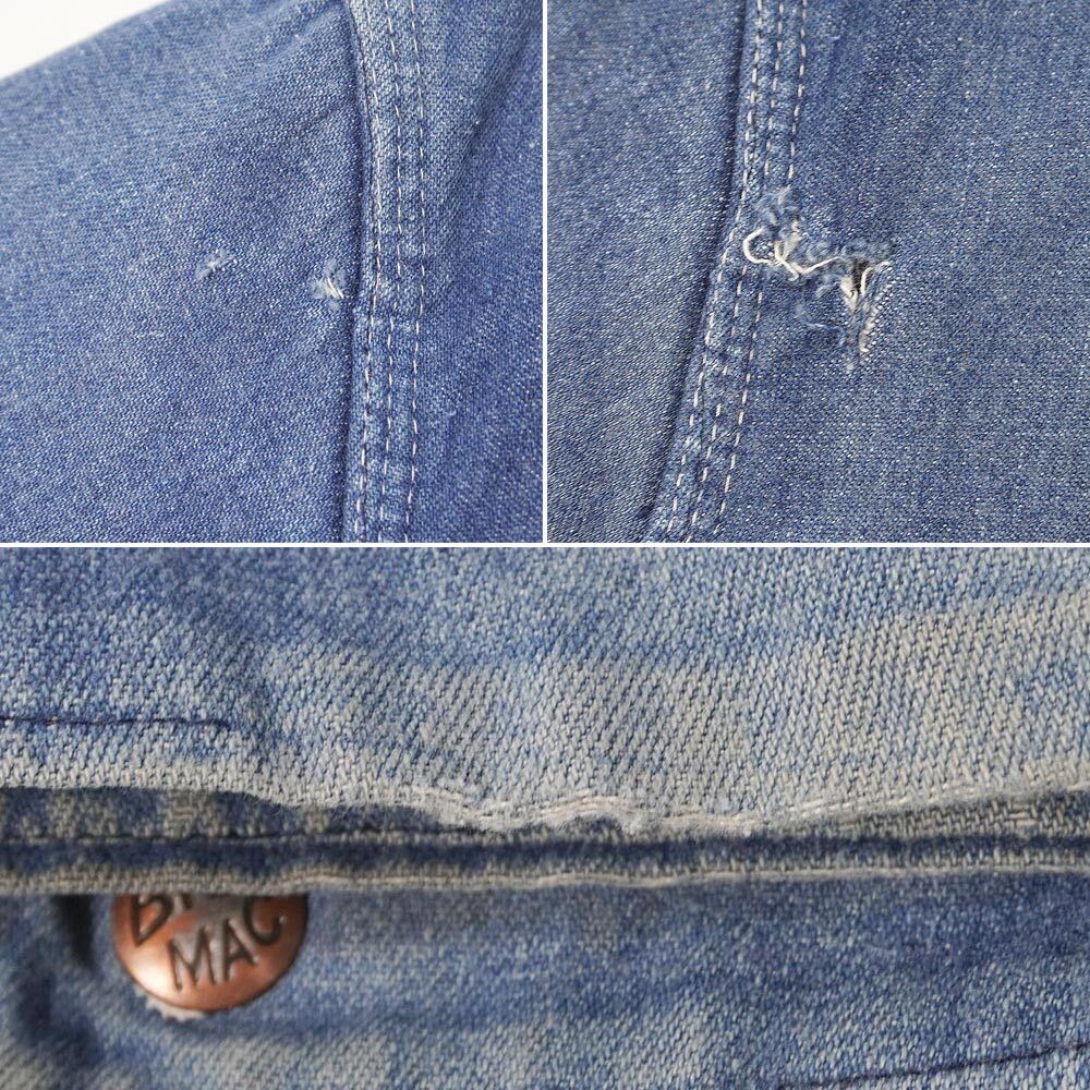 アメリカを代表するワークウェアレーベル『BIG MAC』が70年代に製造した、4ポケット仕様のオーセンティックなカバーオールです。ダメージ等は否めませんが着込まれヤレた雰囲気はヴィンテージならではで、袖に見られるハチノスなどはお好きな方にはたまらないポイントなのではないでしょうか。
