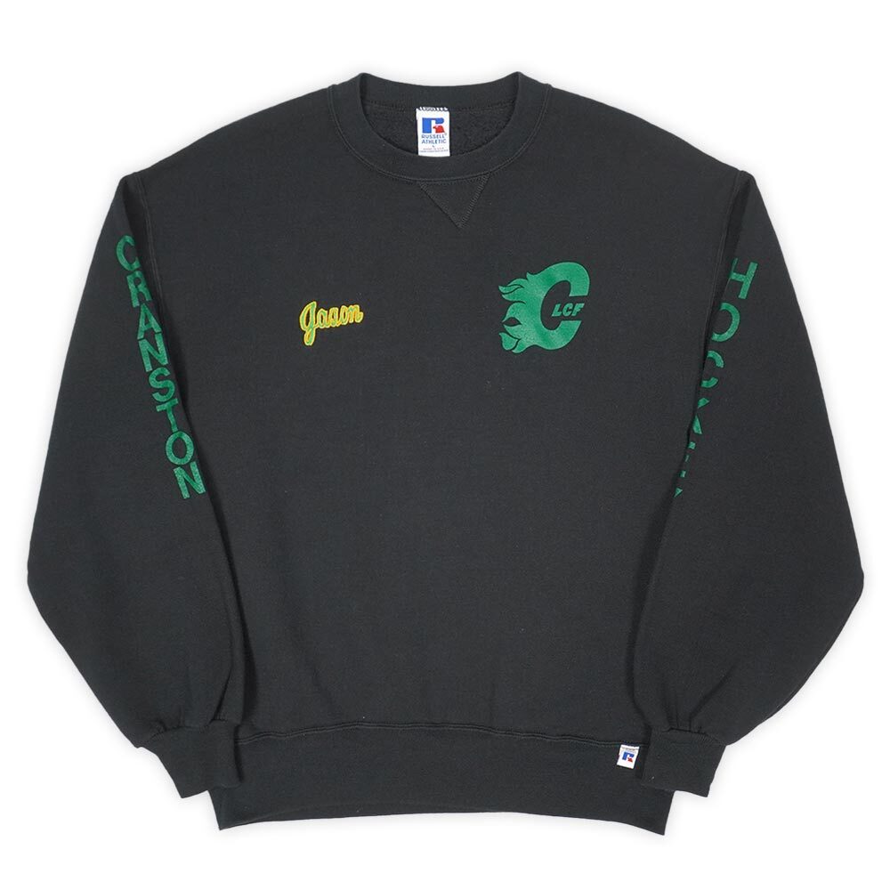 90's RUSSELL プリントスウェット "BLACK / MADE IN USA"