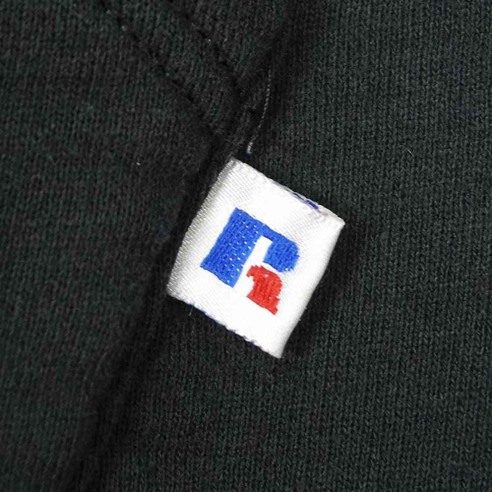 お探しの方が多いOLDラッセルですが、こちらは一番人気のブラックカラーが魅力のフーディータイプ。ホワイトの2段プリントも雰囲気抜群で、製造国はもちろんアメリカです。