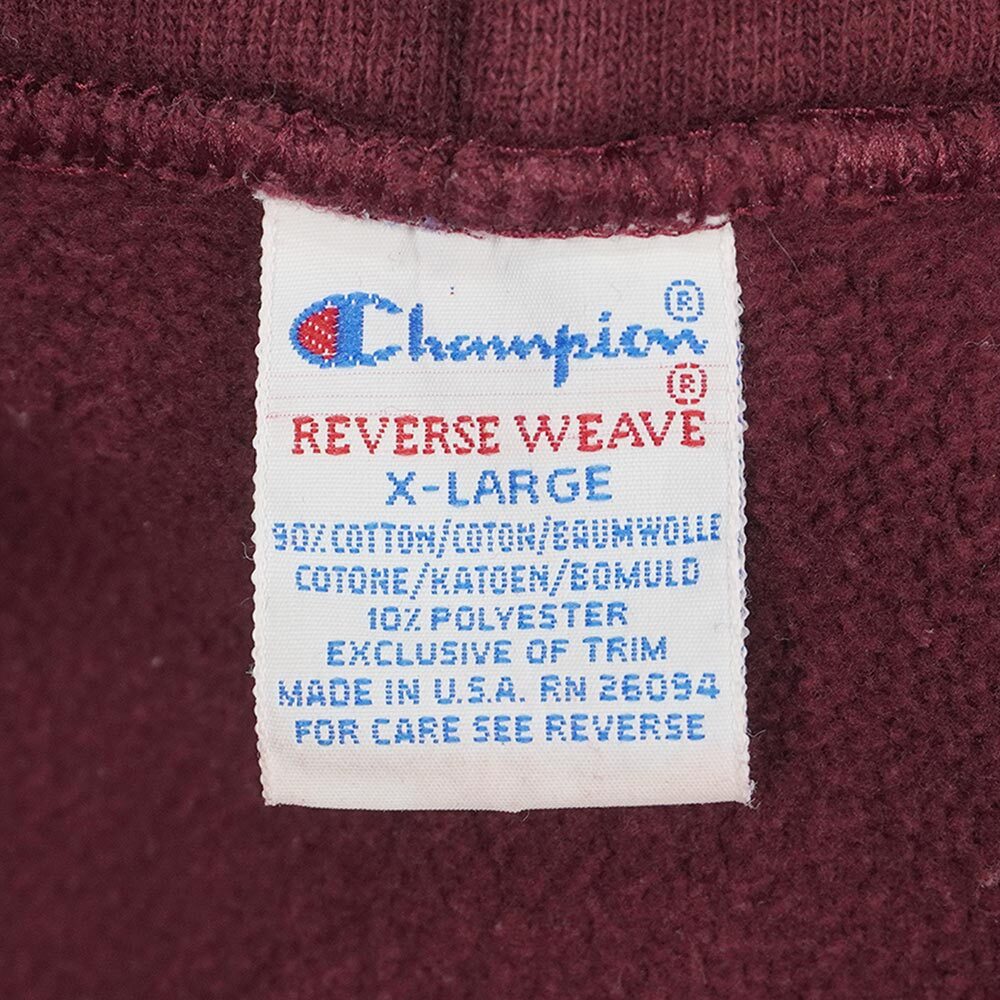王道のカレッジプリントが目を引く、90年代にアメリカで製造されたリバースウィーブのフーディーです。大きめサイズですが、この年代の物は身幅がやや細身のシルエットですのでルーズ過ぎずバランスの良いサイズ感でお召しいただけるのではないでしょうか。