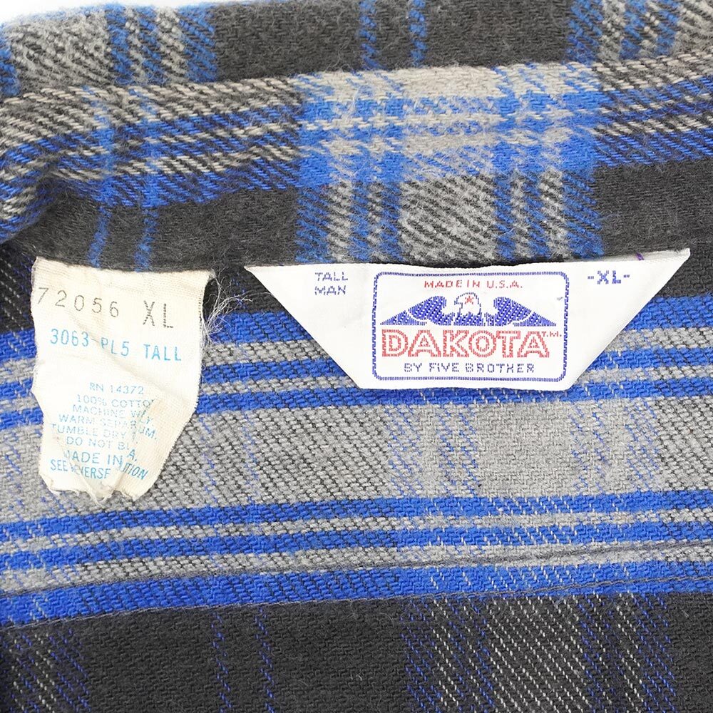 80's DAKOTA by FIVE BROTHER ヘビーネルシャツ "Black×Blue Plaid / MADE IN USA" [mtp03510502687538]