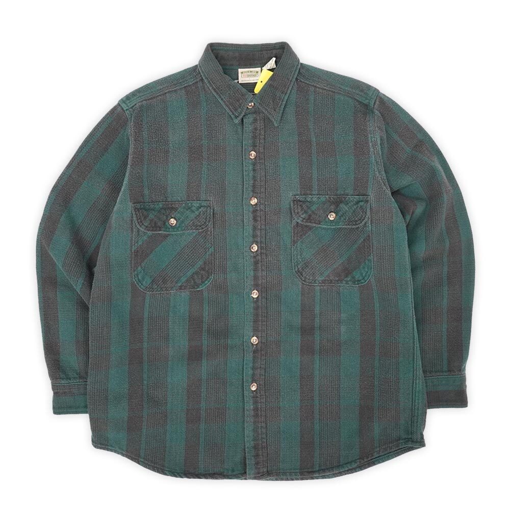 Late 90's FIVE BROTHER ヘビーネルシャツ "Fade Black×Green Plaid / USA COMPONENTS"