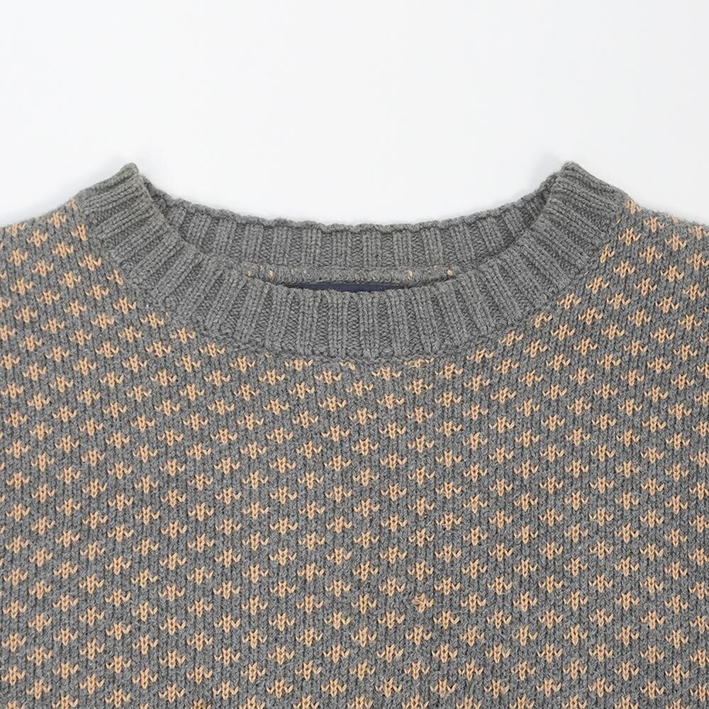 L.L.Bean等でも人気のバースアイ柄を想起させる、雰囲気の良い総柄が魅力の一着。ご家庭でのメンテナンスが容易でスウェット感覚でお召しただけるグッドレギュラーです。