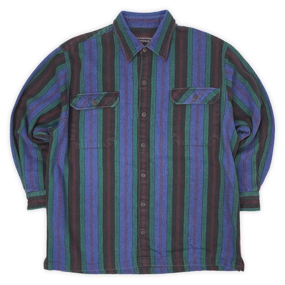 90's ROUNDTREE & YORKE マルチストライプ柄 ヘビーネルシャツ