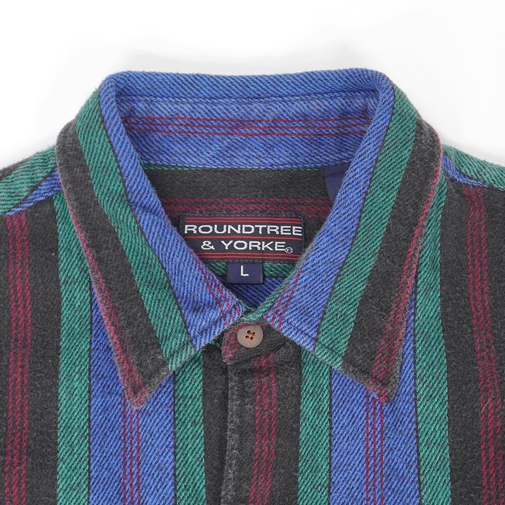 90's ROUNDTREE & YORKE マルチストライプ柄 ヘビーネルシャツ [mtp03510702507561]
