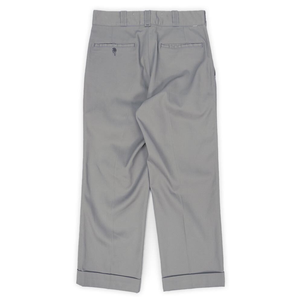 ディッキーズの874と同じTCツイルで仕立てられた定番アイテムですが、こちらはウエスト内側のUNIVERSAL STUDIOSのバーコードからスタッフやキャストの衣装として納品されていた物と思われる変わり種。短めにダブルで裾上げされたクロップド仕様ですが、小柄な方やソックスを見せるスタイリングには非常におすすめのサイズ感です。
